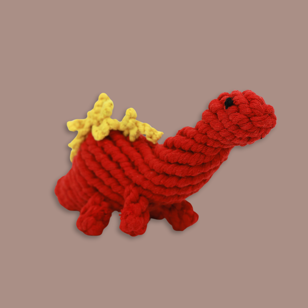 The fiery Red Dinosaur Rope Toy is meticulously handcrafted to ignite your pet's playtime with a burst of energy and excitement. Ruby, a name inspired by the gemstone associated with passion and energy, perfectly captures the vibrant spirit of this ancient creature. Designed and crafted in a workshop dedicated to the art of quality.